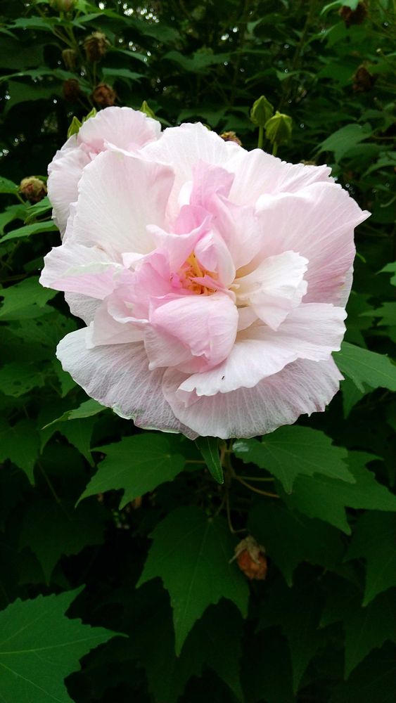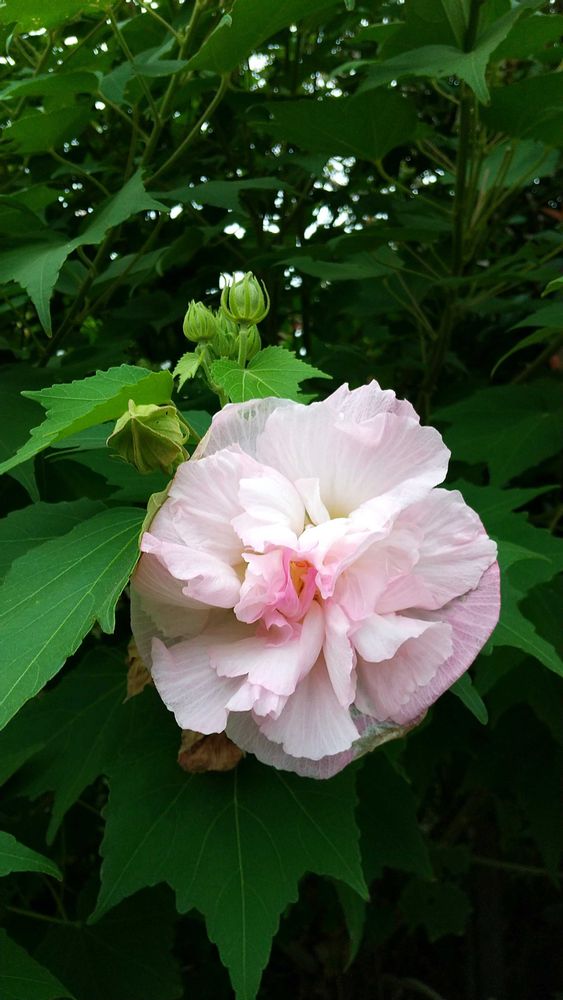 どおりで草丈高いなって思って調べたら酔芙蓉は草丈が通常2~3mあるそうです。確かに私が近くで眺めていた時もそれくらいはあったかも笑