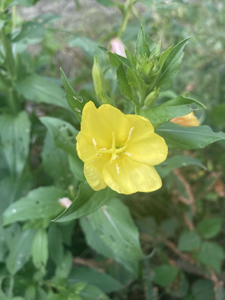 メマツヨイグサの清楚な檸檬色が、繊細で愛らしいお花にとても似合っていますね。素敵です。