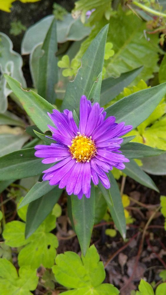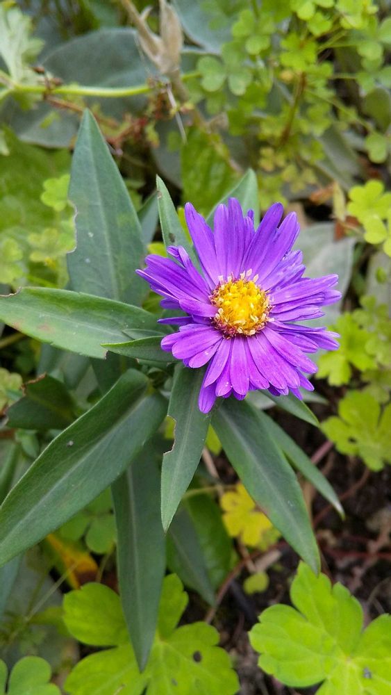 ユウゼンギクでしょうか 筒状花の黄色と周囲の舌状花の赤紫色 そして葉の濃緑色のコントラストが美しいです 割と自然に任せた余所様の庭の片隅に咲いていました ネバリノギクという似た花があるようですが 茎や葉に腺毛があり触ると粘る 総苞片が著しく反り返る 朝夕で花の開閉運動を繰り返すなどといった特徴が見られないので 若干花期が気になりますが ネバリノギクではなさそうです キク科シオン属には手を出すまいと思いつつ 性懲りもない投稿ですが 違う名前の花でしたら ご指摘ください