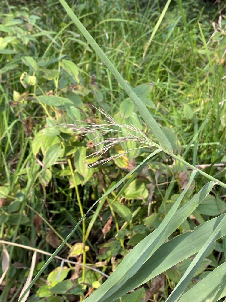 この公園は池の周りにヨシがたっくさん生えています。ここでは穂の出始めの状態でした。