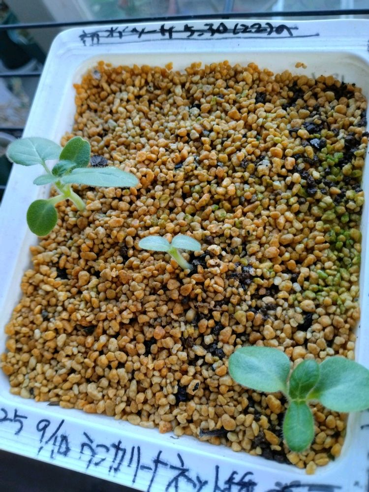2024年3月22日に交配 2024年7月12日に結実した種を採取 2024年8月14日に種まき 2024年9月に発芽 その後、植え替えをして現在2025年7月に至る 今後の成長はアプリで記録 花が咲くまで継続