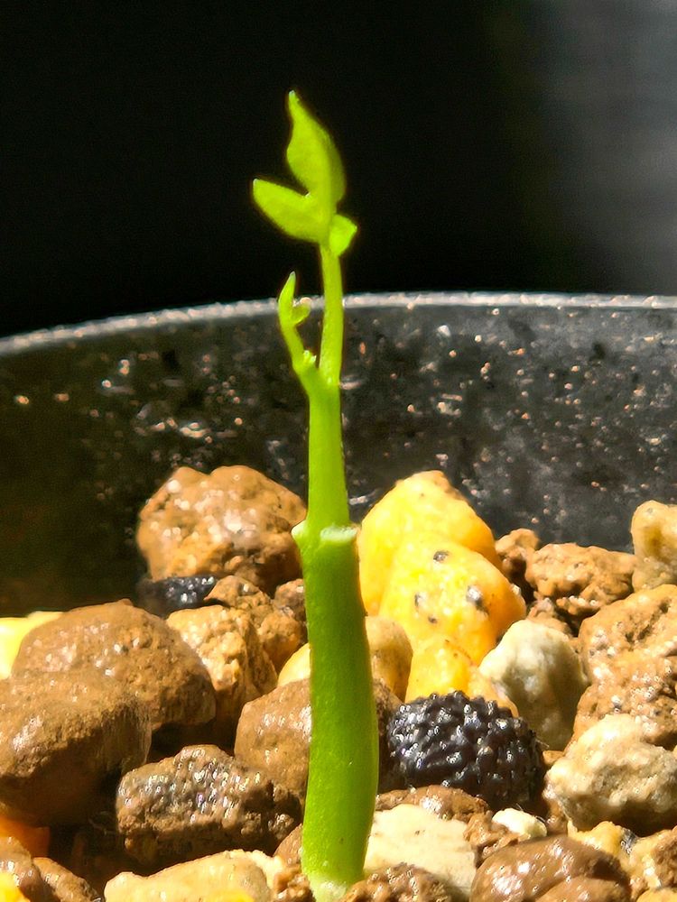 実生3cm 播種から二週間目、しっかり葉が2枚延びています!