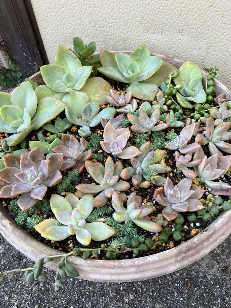 カット多肉ちゃんで立派な乗せ植えからの寄せ植えですね😍💕