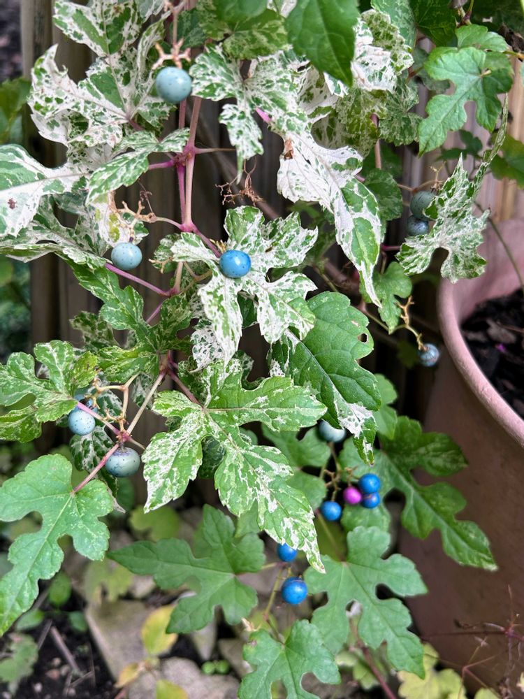 野葡萄の実の色はどうしてこう色とりどりなんでしょう🌿🩵💙🩷