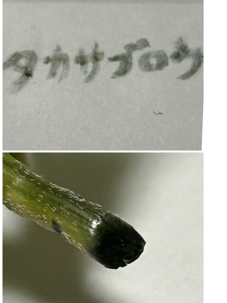 4️⃣茎を傷つけると、空気に触れて黒い汁が出る