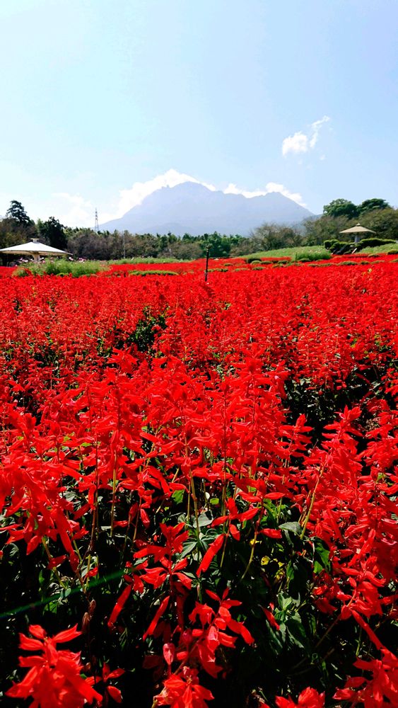 赤いサルビアと雲仙岳のコラボ、カレンダーにでもなりそうですね👏