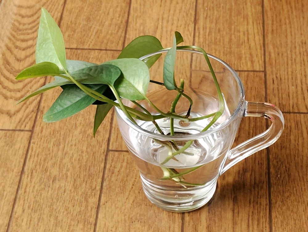 ポトスと比べたら根っこの成長速度が遅いような気がしますが、もう少し水耕栽培を続けて根っこが充実してきたら植え付けます👍