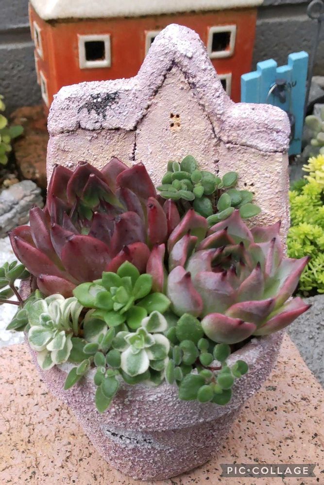 3枚目は、tokyo-mortar-clubさんのリメ鉢に、寄せ植えしたもの。名無しさんですが可愛いです🥰
