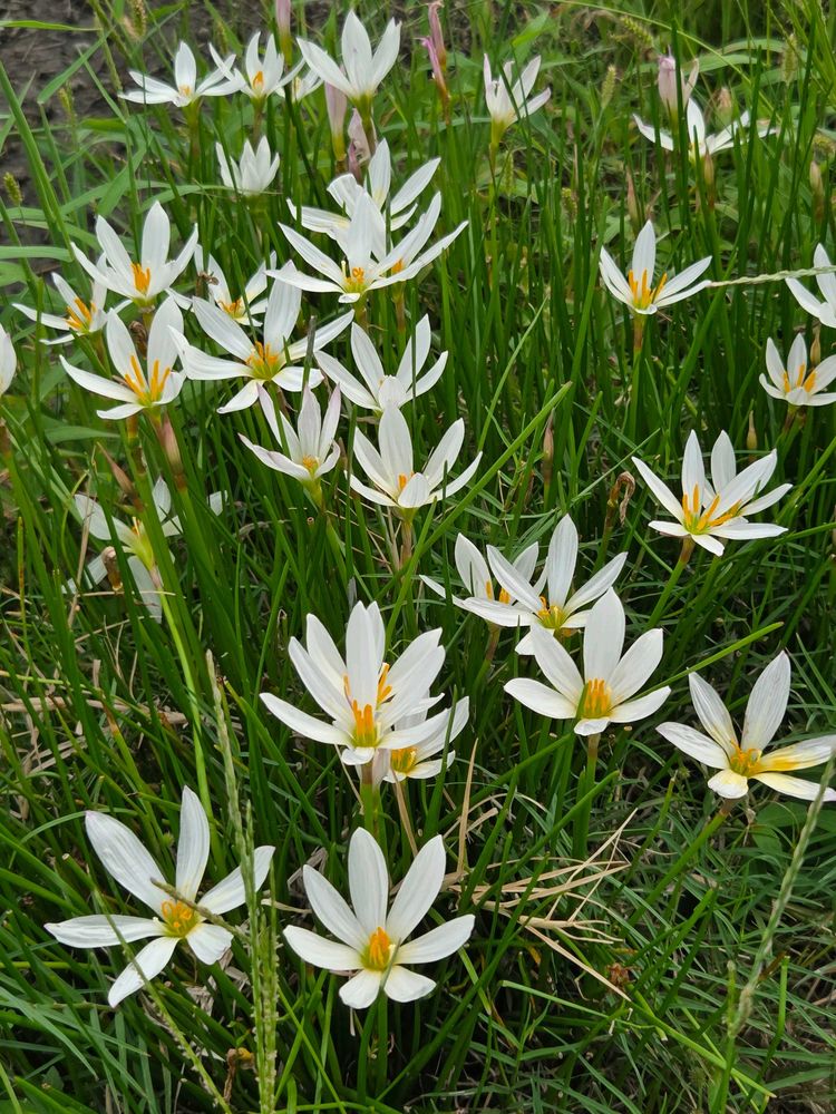 3️⃣枚目、畑に移植した我が家のタマスダレ、日当たり良くなって花を増やして来ました。
