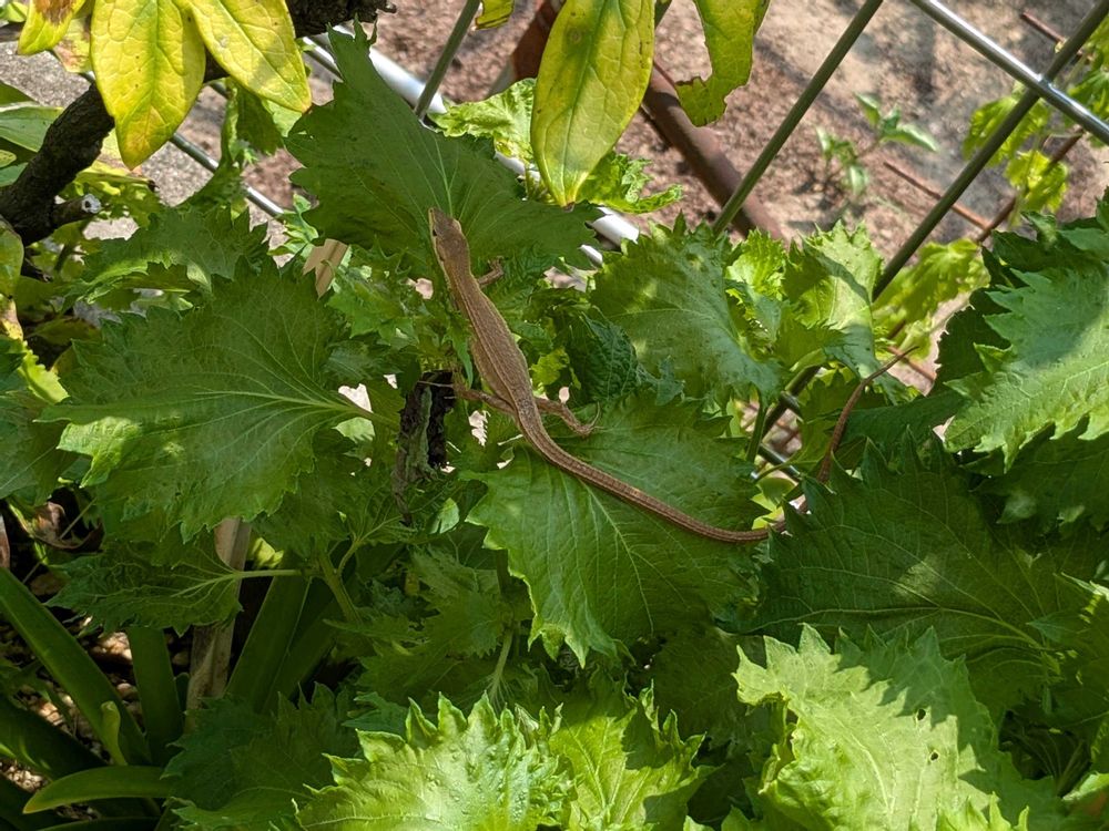 ⑤、シソの葉 カナヘビ君と