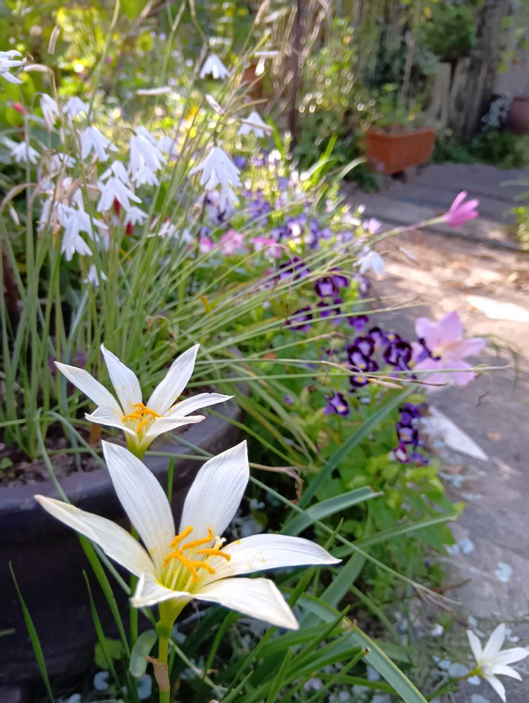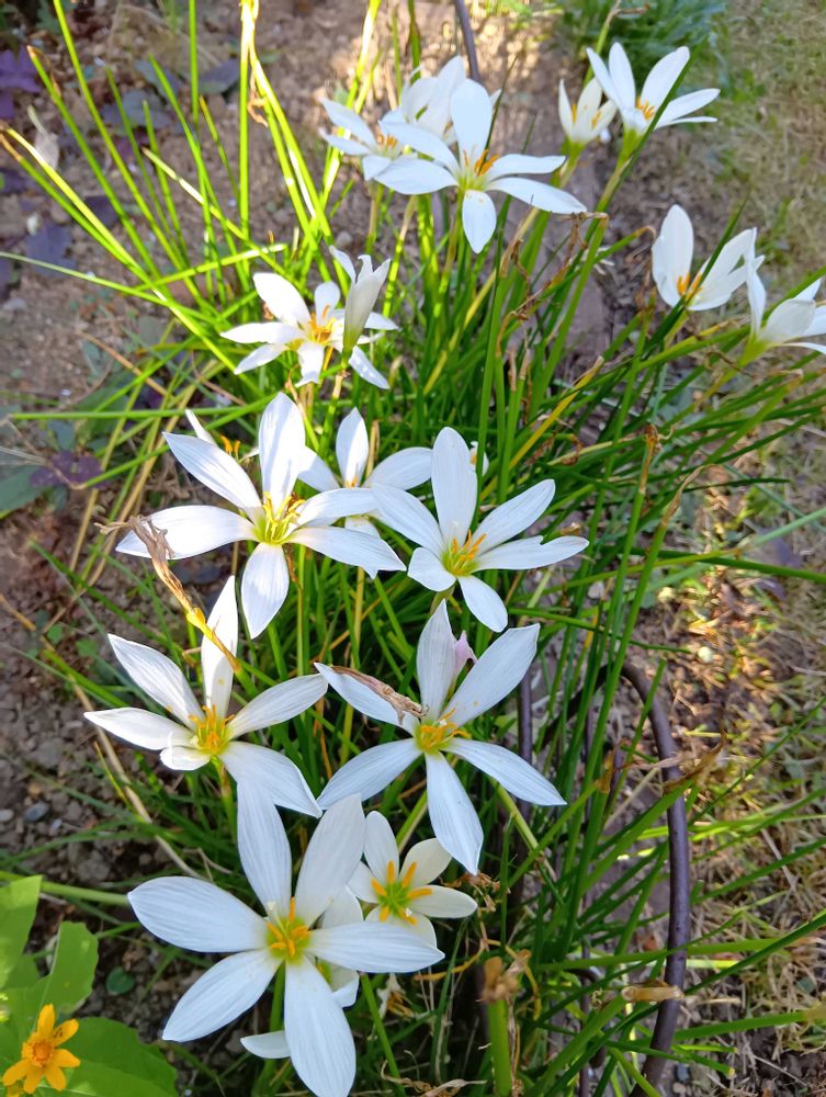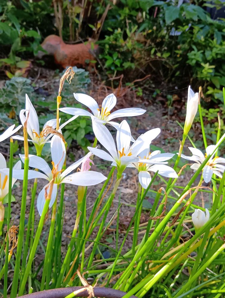 タマスダレの向こうの秋咲きスノーフレークに思わず目がいっちゃいました〜やっぱり可愛いね〜🤍🤍🤍🤍🤍✨✨✨