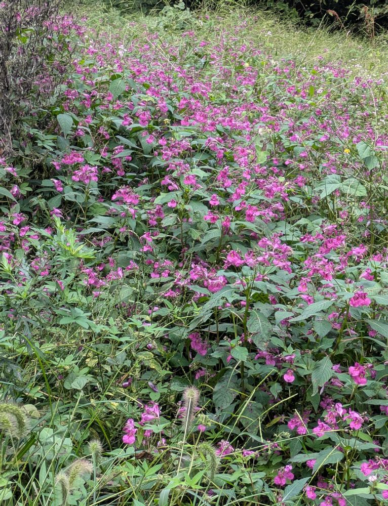 こんなに群生しているピンクのツリフネソウは初めてです🩷