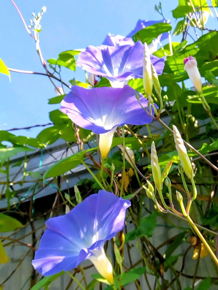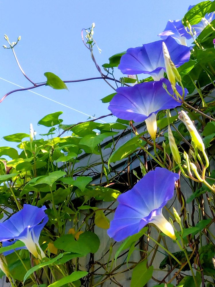 青空の下で咲く朝顔🌼綺麗やね🎵
