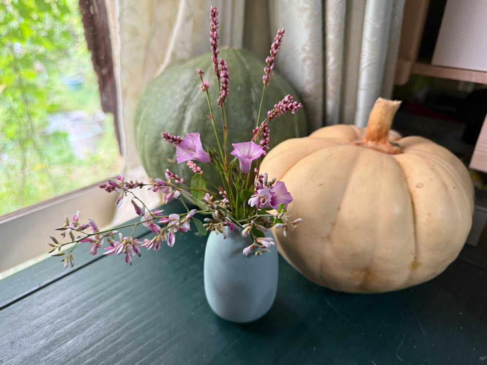 ご近所さんからの頂き物なんですけど、白いカボチャってなんか珍しいので、しばらく飾ってから食べようと思ってるんです😋