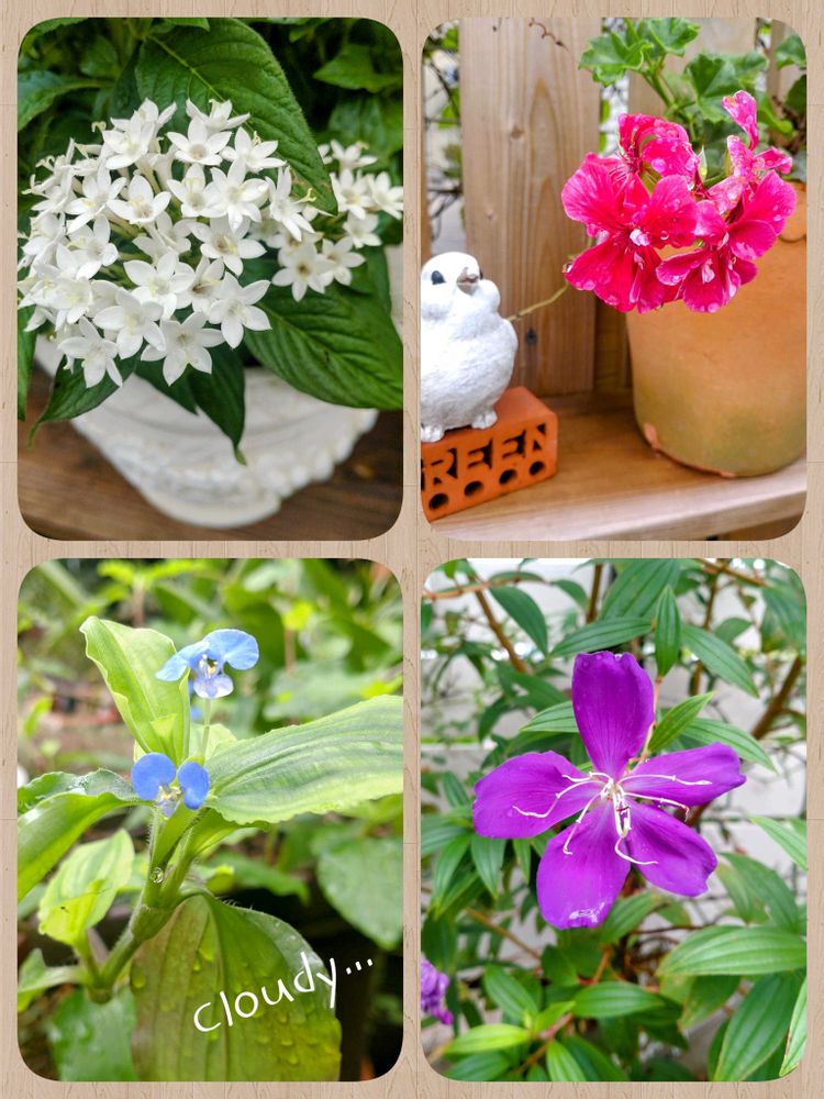 雨上がりで曇っているので水やりはお休み👌おかげでゆっくり観察出来ました🧐ノボタンが咲き始めて💜放置した鉢の主役がツユクサになっていたり💙小さな変化が楽しいな🤭