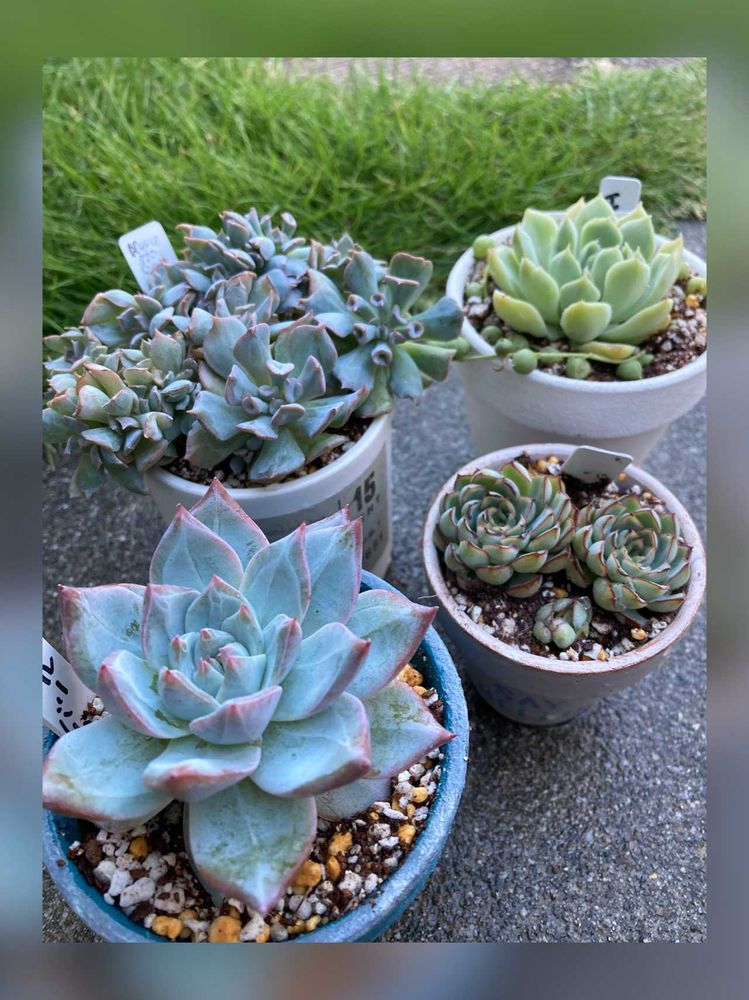チェックして手直し。ほぼ全部植え直しですね🤣一枚目は自分用 2枚目は実家用👀あまり詰めないで、セダムも入れてません管理し易いかなー 植え替えはもう鉢が窮屈💦トランペットピンキーさん鉢増しました ブルーバードさんは、ずっと白いペイントの素焼き鉢からグリーンのに変更 エレガンスさんも、グリネと一緒に缶から素焼き鉢に引っ越し🎵ドリームローズさんは、缶から素焼きの小さな鉢に鉢下げしました😊あまり合わない子や成長良くない子は替えてみるのも良いかも😆