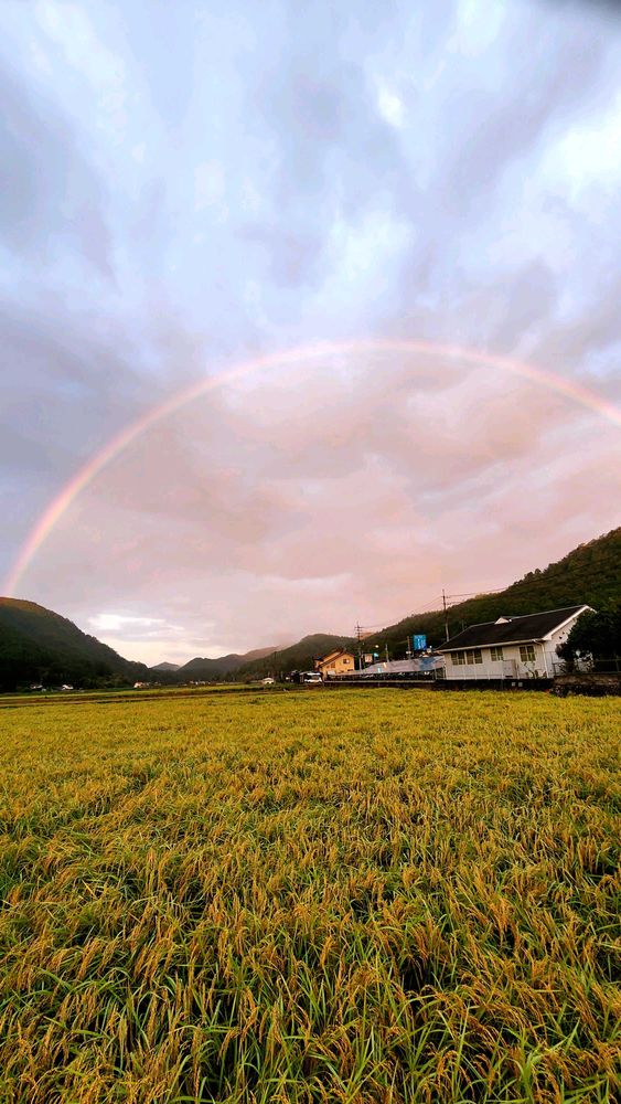 久しぶりに全部繋がった虹を見たかも…(空が青空ならもっと良かったのに…)😂