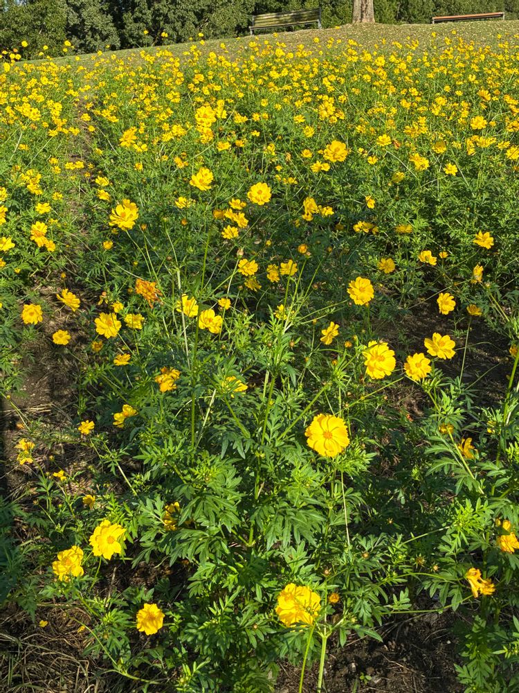 先日、万博公園の「花の丘」にて、黄色い「コスモス」をパチリ!📸💛🌿😄🤗✌️