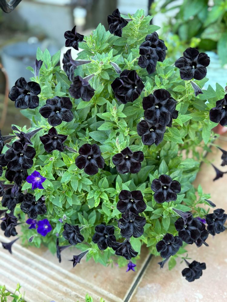 1️⃣朝晩涼しくなり黒之瀬戸が旺盛になって一緒に植えてあるスーパーチュニアブルーモーンプラスが負けて来ました🖤💙