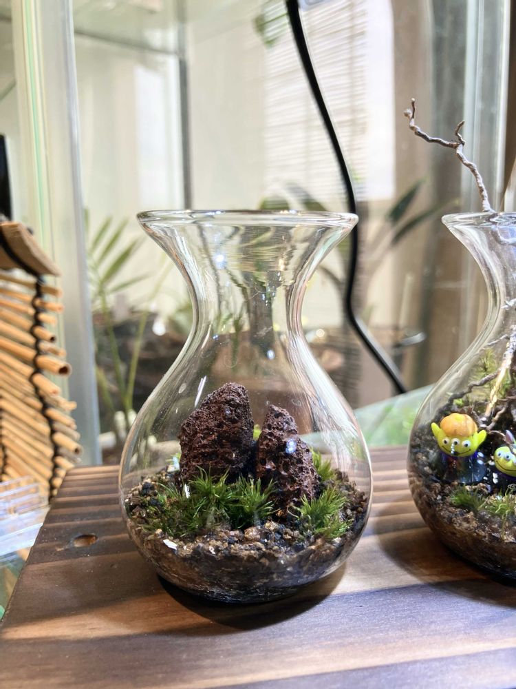 小さなテラリウムは可愛くて どこでも飾れるから良いですよ😆