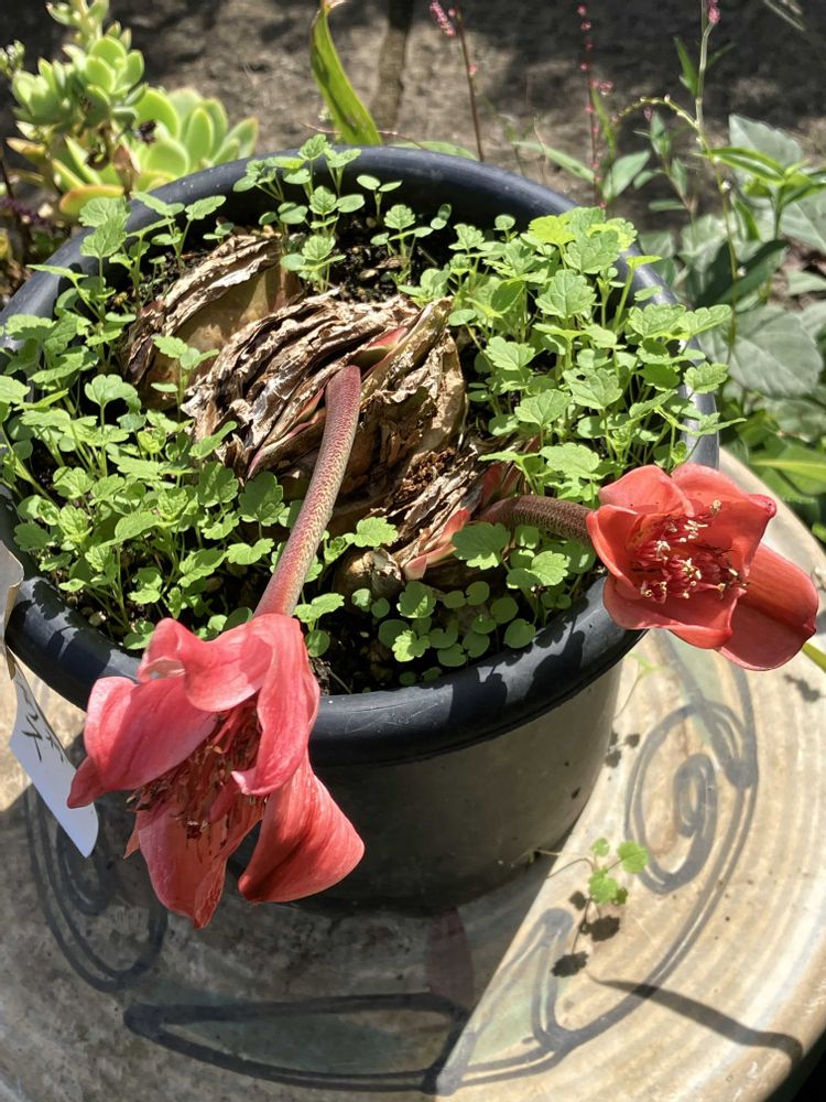 アカバナマユハケオモトとも呼ばれる GSさんの投稿でマユハケオモトはよく見るけど 重ねた牡蠣殻様の間から花が咲くとはビックリです
