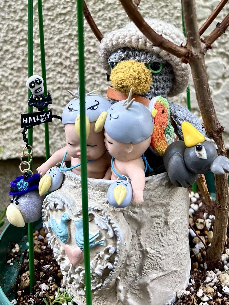 ハシビロコウの日だったんですね〜。編み編みのハシビロコウさん、可愛い♡キモバブちゃんのお世話してる〜♪