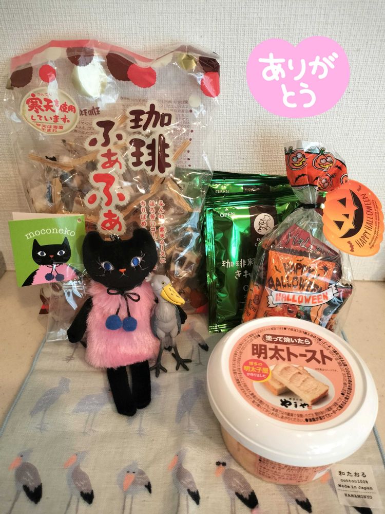 3枚目〜花友さんから素敵便🎁が届きました❣ 欲しいと思ってた😽にハシビロコウ🦤オヤツもありがとうございます😍