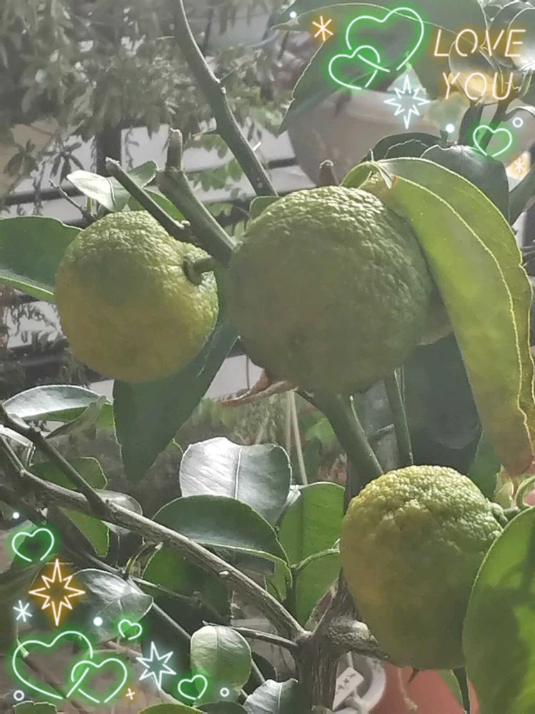 🍊花ゆず❣️が緑色💚から黄色💛っぽくなって来ました😍😋🤩😋🤗💕💕