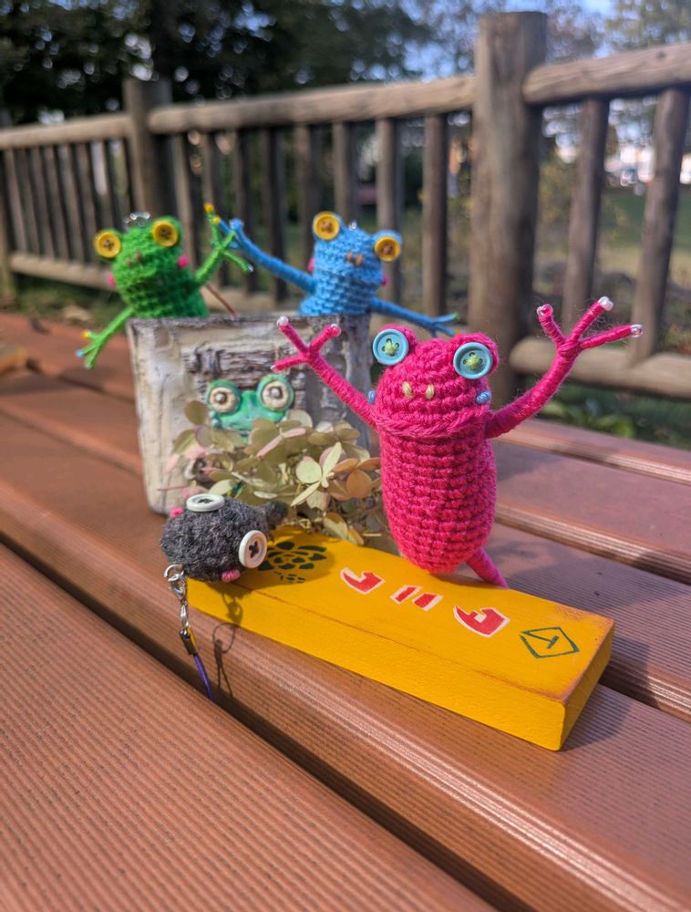 🐸の編みぐるみちゃんもカラフルでいいね!☺️👍🏻💕