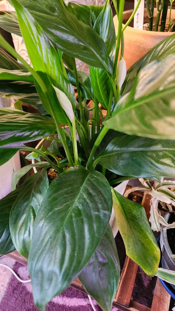 ①ダイソーお迎えしたスパイフィラムに花芽が上がってきました(笑)