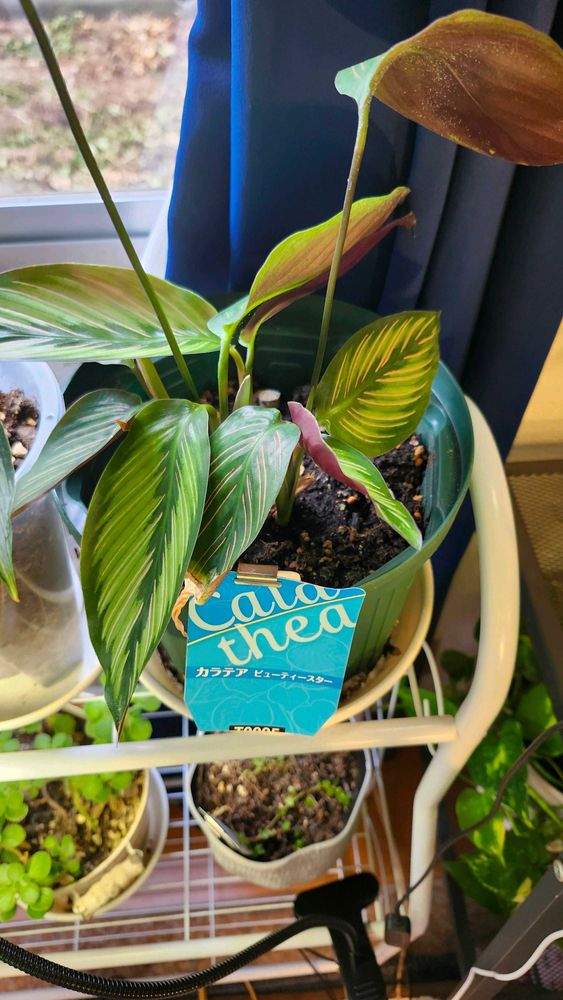 ③カラテア ビューティースター1号葉っぱが1枚になってもう駄目だと思ってたのに葉っぱが出てきて見れるようになりました😄