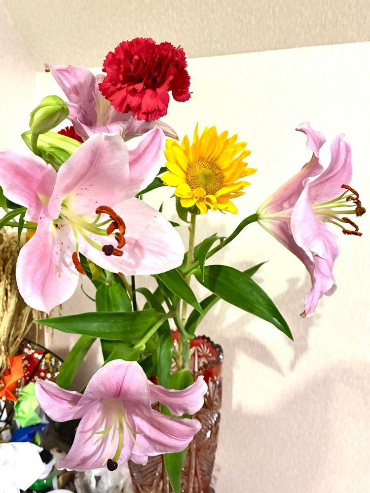 お店の開店祝い🎉の花、ユリ、向日葵 などの他