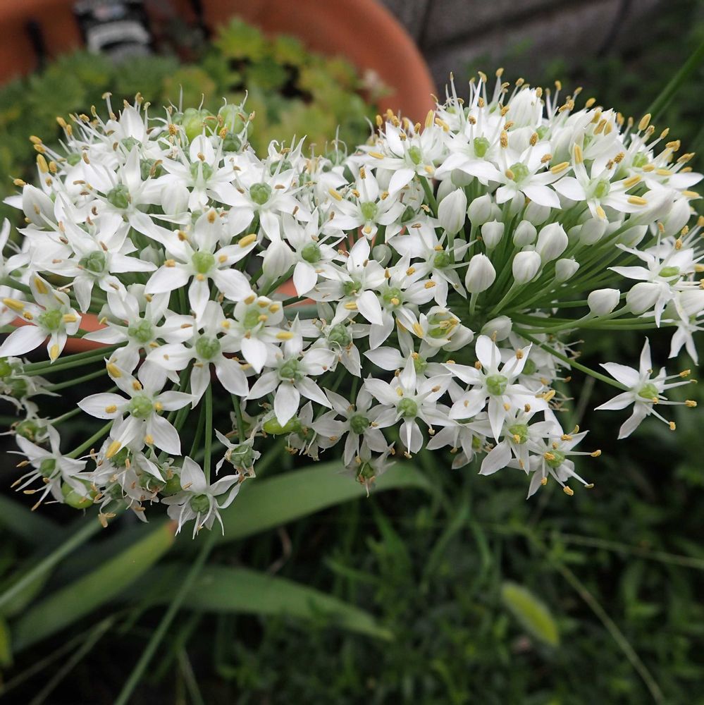 葉っぱの時には、葉の形も匂いもニラに似ているけど、アリウムの小型の品種も同じ仲間で良く似てるからなあと思っていたのですが花が咲いたらこれはニラだー!と確定👍しました😁来年は食べられるかな〜?🤗😄😋