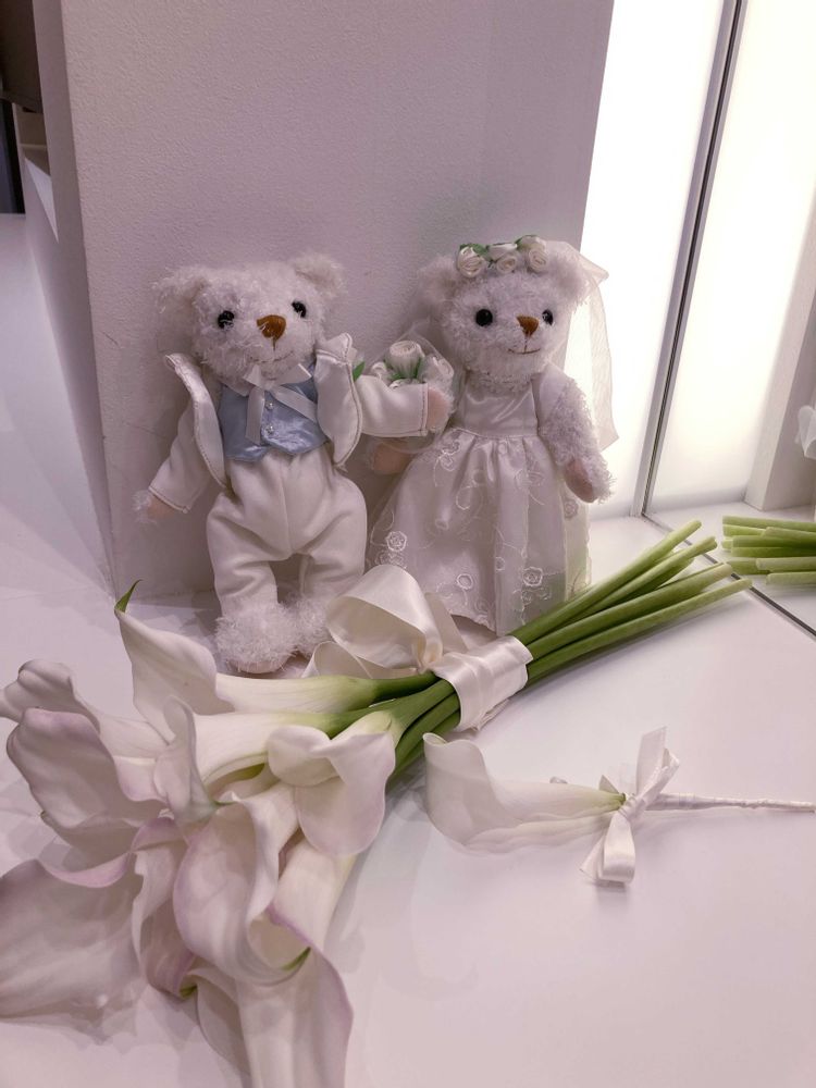 ブーケはカラー!装花はブルースターがポイント