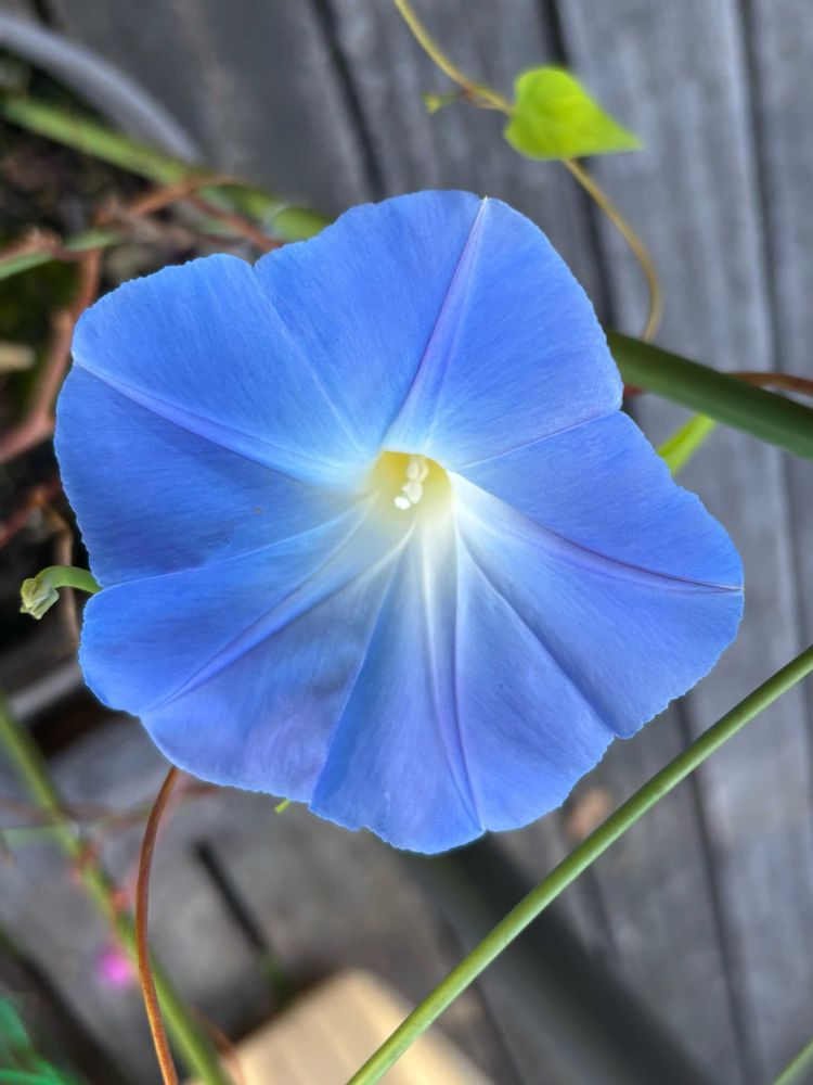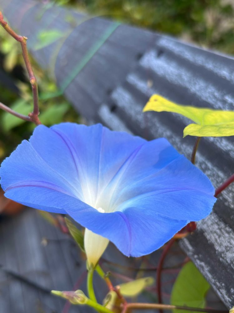 ヘブンリーブルー 寒くなってきても咲いてますね〜 葉っぱが黄色くなったかな?