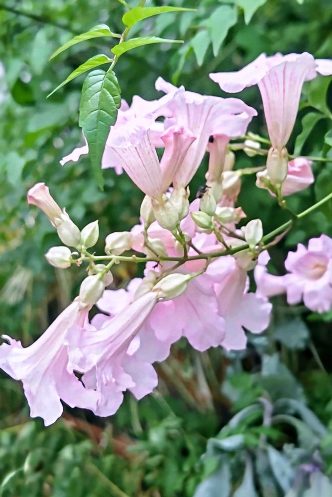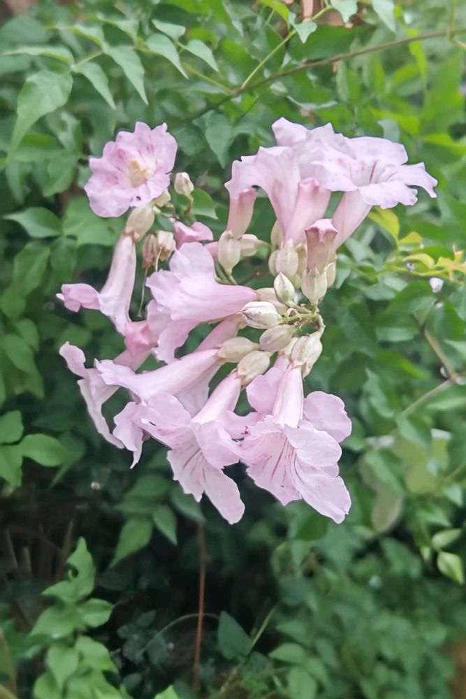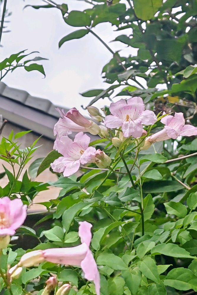 オレンジのノウゼンカズラと比べるとかなり小ぶり。