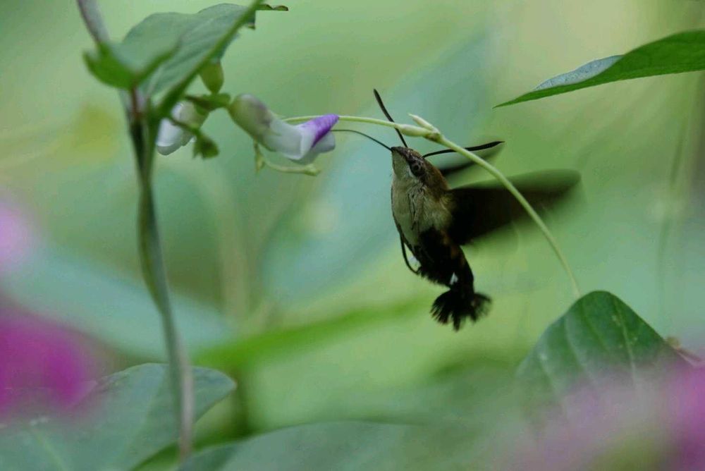 今日は大好きマメ科の珍しい花〜見かけたこと無いから、普通には見られ無いのかなぁ〜ホウジャクさんの飛ぶ姿も上手くシャッター切られてて、可愛いデス〜😍✨👍