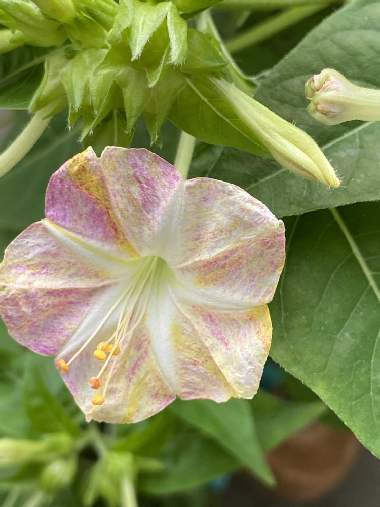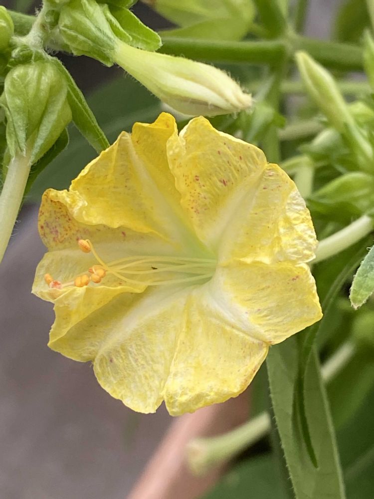 オシロイバナは3色株なのにレモン色 少しピンクが出ています💛🩷