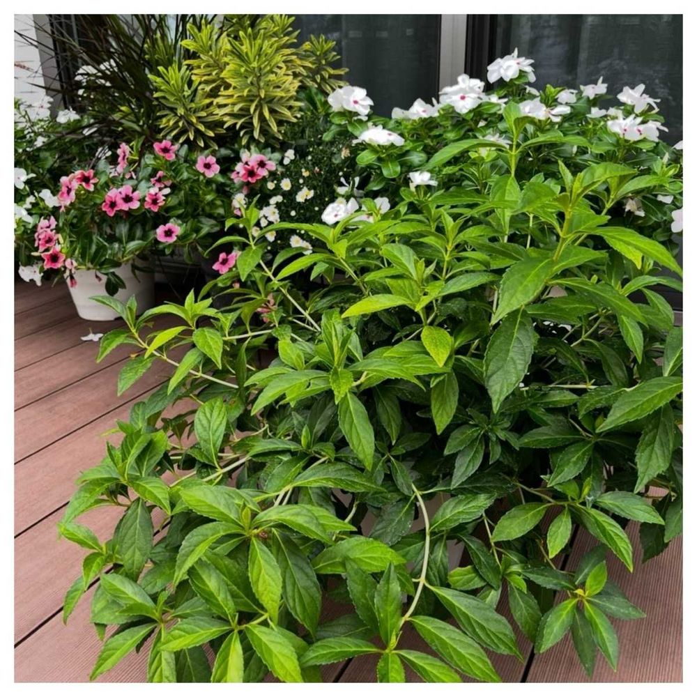 ①昨年の寄せ植えからリーフがいい具合に育ったのでニチニチソウモネをプラスしました♪
