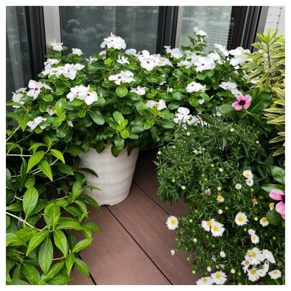 ②③白いニチニチソウと昨年ベビー苗でお迎えしたラグランジアオーロランジュです🍃