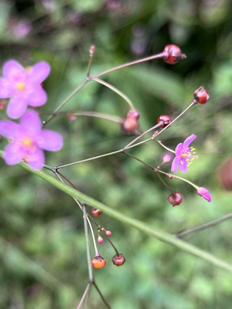 花の後の小さな粒々の実がはじけて種が飛び出すことから名前が付きました。夕方咲くため三時草とも呼ばれています。