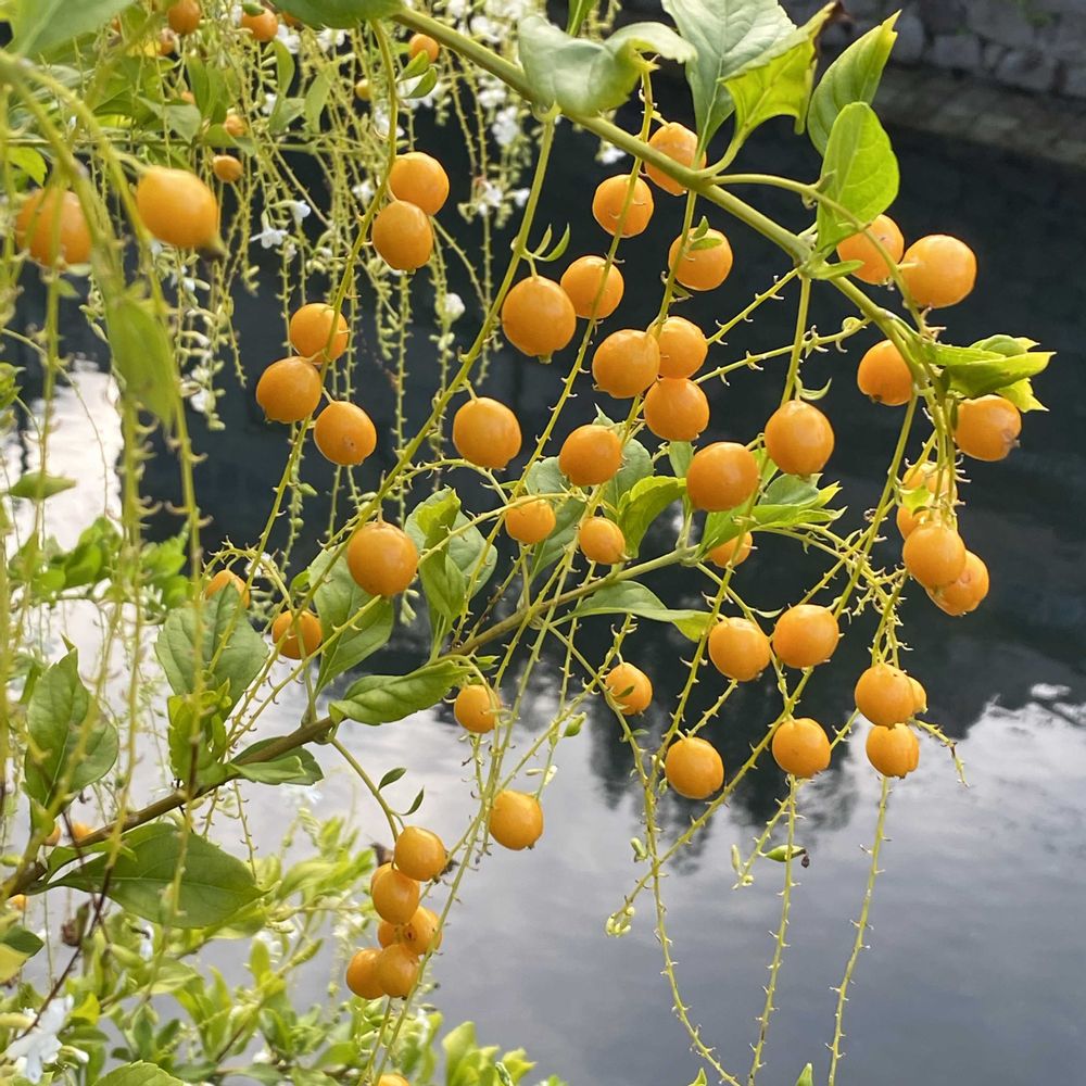 長崎市の中心部を流れる中島川沿いには、白花のデュランタ🤍💚