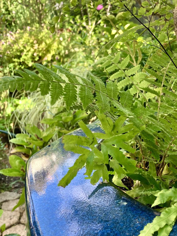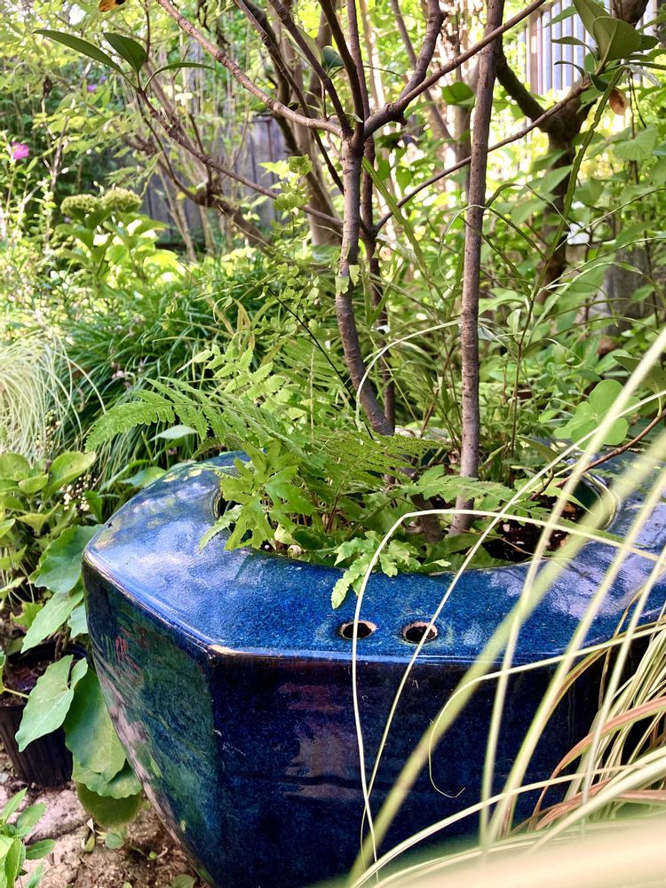 ❷❸ 庭のシダ類等の寄せ植えを火鉢に