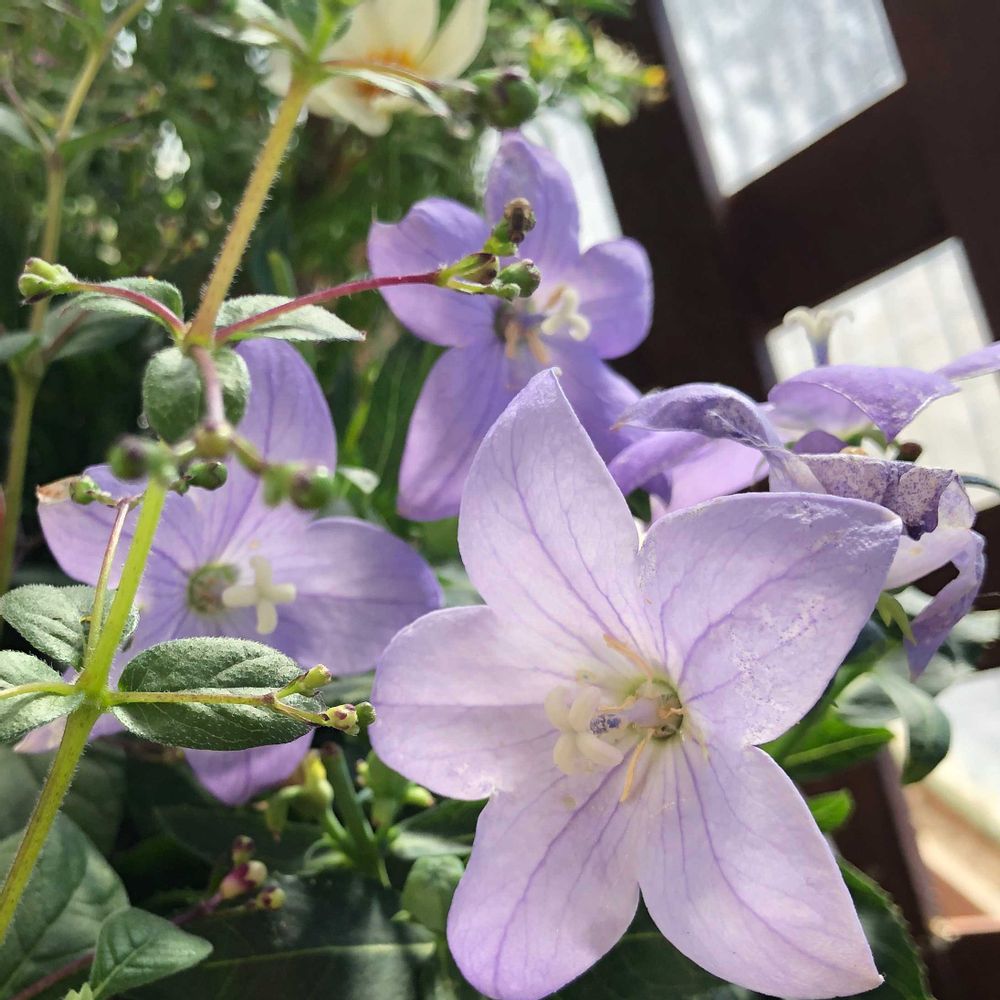 ベランダで、💜キキヨウ。💜リンドウ💜こぼれ種からトレニアさん。咲きました。