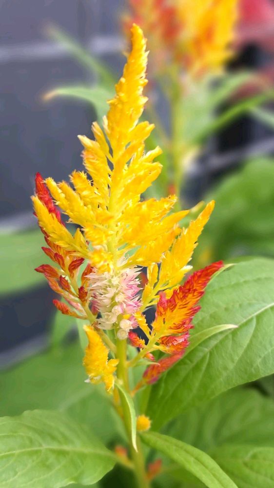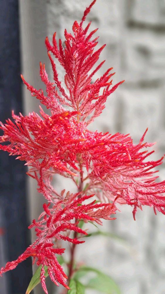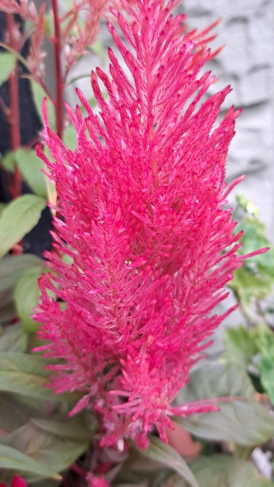 玄関横には ケイトウを飾っています