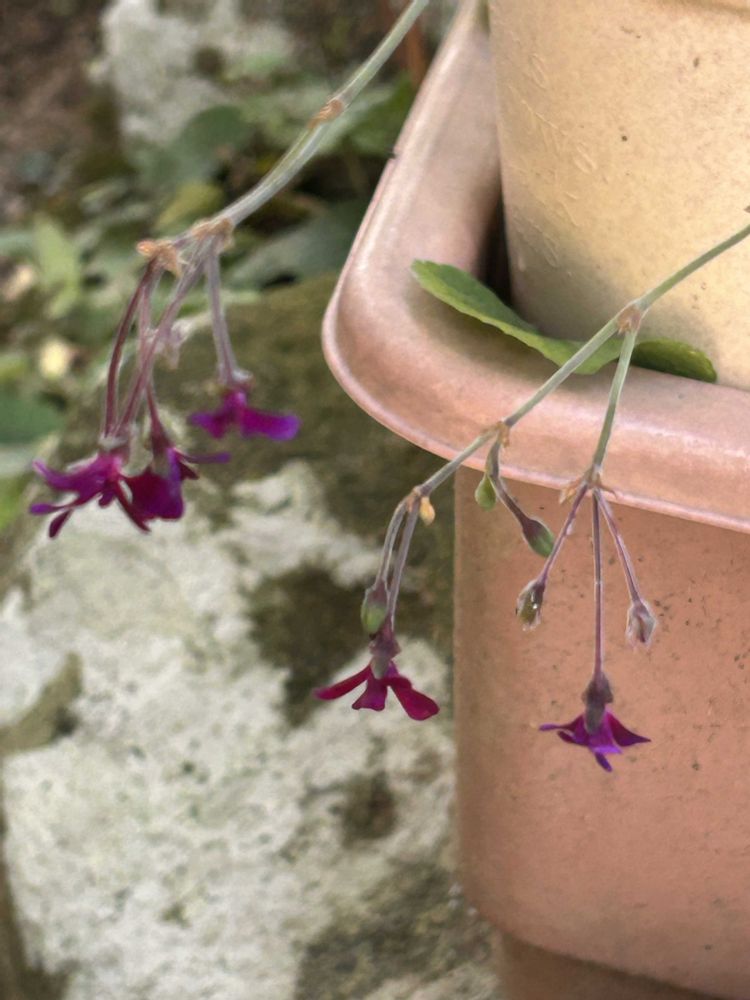 べラルゴニウム・シドイデスは、シルバーグリーンの丸い葉とシックな花色が印象的な原種系ぺラルゴニウムの一種、赤紫の小さなお花が咲きました♥️💜