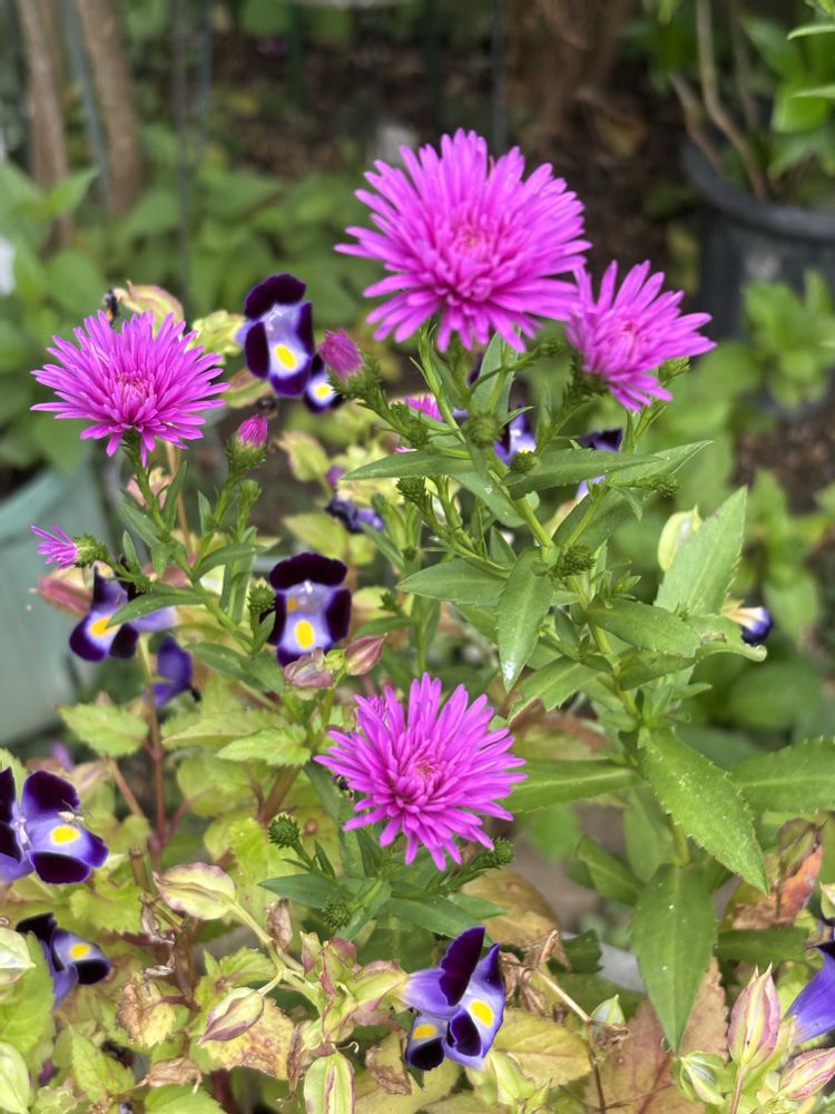 孔雀アスター、虫被害もなく今年の花は綺麗、葉も綺麗🥰