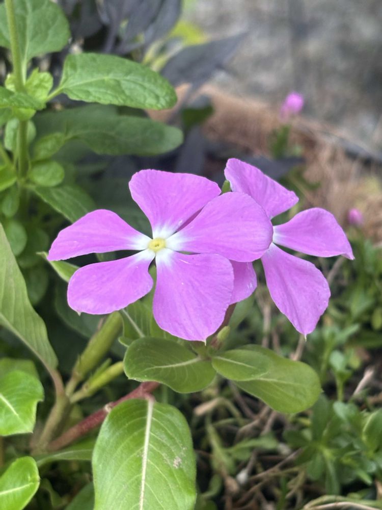 ニチニチソウのピンクは、零れたねから。ニチニチソウは、立ち涸れてしまうことが多く、上手く育てられない。