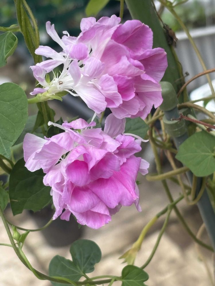 朝顔サンスマイルは、芋虫被害で大きくなれず、花もあまり咲かない😥