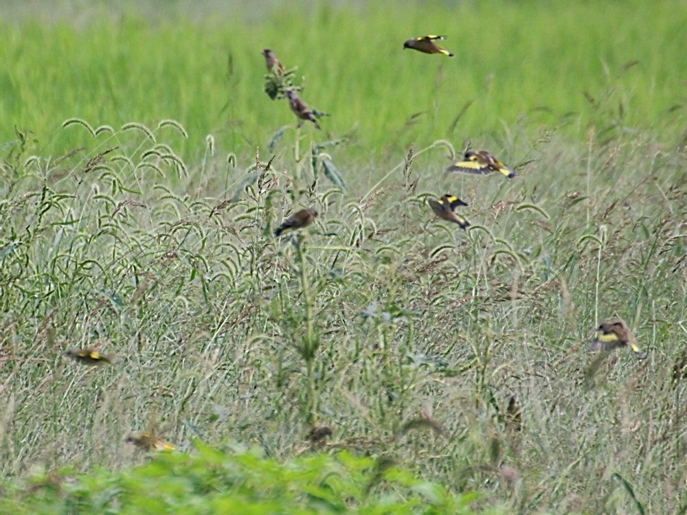 ⑤種子が好きな『カワラヒワ』は集団でお食事中